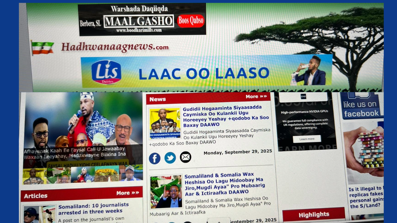 Hadhwanaag News is an independent news outlet run by Canada-based Somaliland exiled journalists. For years, its reporters have faced relentless legal threats and persecution merely for exposing corruption allegations against former Central Bank Governor Ali Ibrahim Jama, widely known as Ali Baghdadi.