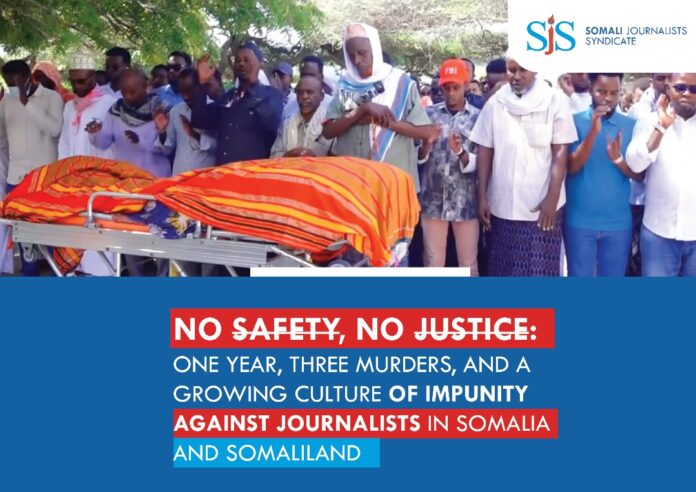 The Somali Journalists Syndicate (SJS) remains gravely concerned about the persistent culture of impunity that continues to endanger journalists and undermine press freedom in Somalia and Somaliland. The lack of accountability for the killings of Amun Abdullahi Mohamed, Mohamed Abukar Mohamed (Dabaashe), and Abdifatah Abdi Osman (Arab) reflects a deep failure by the authorities to protect journalists and uphold justice. This failure, coupled with the unending arrests, physical assaults, arbitrary detentions, and restrictions on access to information, has entrenched fear and self-censorship within the media community.
